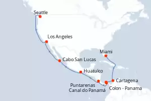 Itinerário : Miami, Cartagena, Colon - Panama, Canal do Panamá, Puntarenas, Huatulco, Cabo San Lucas, Los Angeles, Seattle
