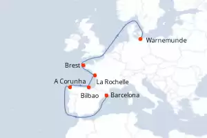 Itinerário : Barcelona, A Corunha, Bilbao, La Rochelle, Brest, Warnemunde