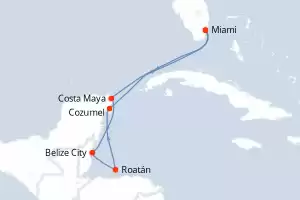 Itinerário : Miami, Costa Maya, Belize City, Roatán, Cozumel, Miami
