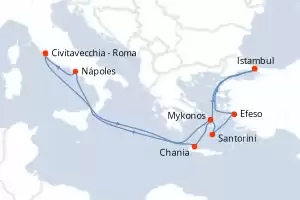 Itinerário : Civitavecchia - Roma, Chania, Istambul, Efeso, Santorini, Mykonos, Nápoles, Civitavecchia - Roma