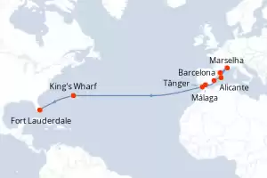 Itinerário : Barcelona, Marselha, Palma de Maiorca, Alicante, Málaga, Tânger, King's Wharf, Fort Lauderdale