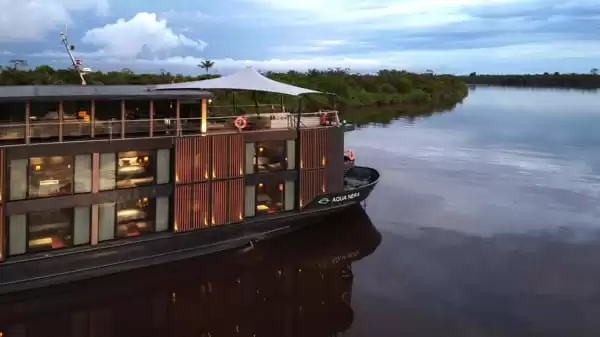 Desenhado pelo gabinete Studio Noor em Ho Chi Minh City, o Aqua Nera inspira-se nas lagoas de água negra amazónicas e joga subtilmente com os contrastes entre uma atmosfera intimista e detalhes de artesanato peruano, espanhol e português. Com mais de 62 metros de comprimento, este navio de design contemporâneo e linhas depuradas apresenta uma silhueta elegante, concebida para navegar com facilidade pelos meandros profundos e pouco explorados da Amazónia peruana. A decoração interior, sóbria e sofisticada, presta homenagem à riqueza cultural da região através de referências aos motivos tradicionais shipibo-conibo, aos azulejos de Iquitos e a materiais nobres.