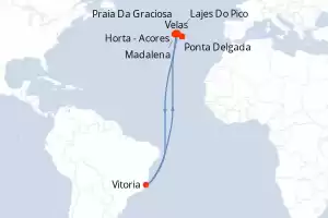 Itinerário : Ponta Delgada , Velas, Horta - Acores, Madalena, Lajes Do Pico, Praia Da Graciosa, Vitoria, Angra dos heroismo, Ponta Delgada