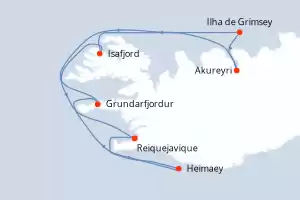 Itinerário : Reiquejavique, Heimaey, Grundarfjordur, Ilha de Grimsey, Akureyri, Isafjord, Reiquejavique