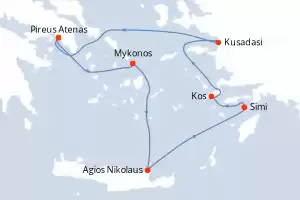 Itinerário : Pireus Atenas, Mykonos, Agios Nikolaus, Simi, Kos, Kusadasi, Pireus Atenas