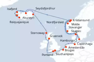 Itinerário : Southampton, Bruges, Amesterdão, Hamburgo, Skagen, Copenhaga, Kristiansund, Skagen, Stavanger, Nordfjordeid, Molde, Akureyri, Isafjord, Grundarfjordur, Reiquejavique, Grundarfjordur, Isafjord, Akureyri, Seydisfjordhur, Stornoway, Greenock, Portland, Southampton