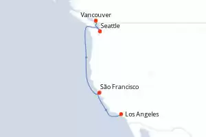 Itinerário : Vancouver, Seattle, São Francisco, Los Angeles, Cabo San Lucas, Mazatlan, Forte Amador, Gatun, Aruba, Porto Canaveral