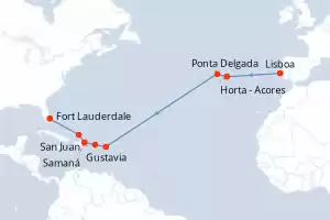 Itinerário : Lisboa, Ponta Delgada , Horta - Acores, Gustavia, San Juan, Samaná, Grand Turk, Fort Lauderdale