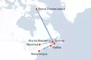Itinerário : Nova Iorque, Halifax, Sydney, Prince Charles Island, Ilha da Madalena, Montreal