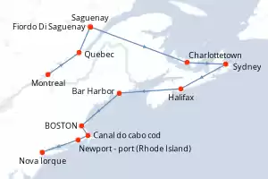 Itinerário : Montreal, Quebec, Fiordo Di Saguenay, Saguenay, Charlottetown, Sydney, Halifax, Bar Harbor, BOSTON, Canal do cabo cod, Newport - port (Rhode Island), Nova Iorque