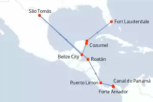 Itinerário : Forte Amador, Canal do Panamá, Puerto Limon, Roatán, São Tomás, Belize City, Cozumel, Porto Progreso, Fort Lauderdale