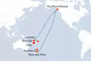 Itinerário : Lautoka, Port Vila, Lifou, Noumea, Pine Island Alaska, Baia das Ilhas, Auckland