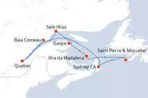 Itinerário : Quebec, Sete Ilhas, Havre Saint Pierre, Gaspe, Ilha da Madalena, Saint Pierre & Miquelon, Sydney, Baia Comeau, Quebec