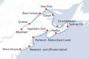 Itinerário : Nova Iorque, Newport - port (Rhode Island), Portland - Maine (East Coast), Saint John, Halifax, Sydney, Charlottetown, Gaspe, Sete Ilhas, Baia Comeau, Quebec, Montreal