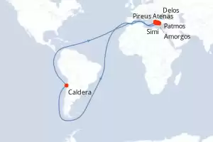 Itinerário : Pireus Atenas, Patmos, Simi, Amorgos, Caldera, Adamas, Delos, Paros, Hydra, Pireus Atenas