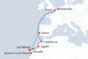 DoverItinerário : Dover, Roterdão, Casablanca, Agadir, Arrecife, Santa Cruz de Tenerife, Las Palmas, Lisboa, Dover