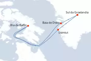 Itinerário : Sul da Groelandia, Baia de Disko, Ilha de Baffin, Sisimiut, Sul da Groelandia