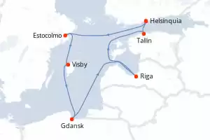 Itinerário : Helsínquia, Estocolmo, Visby, Gdansk, Riga, Tallin, Helsínquia