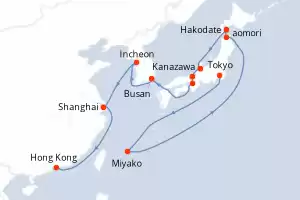 Itinerário : Tokyo, Miyako, aomori, Hakodate, Kanazawa, Maizuru, Sakai-Minato, Busan, Incheon, Shanghai, Hong Kong