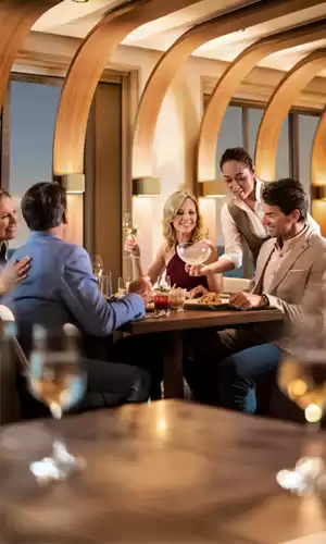 O programa Free at Sea permite personalizar o cruzeiro com vantagens como pacotes de bebidas, jantares em restaurantes de especialidade e créditos para excursões em terra, proporcionando assim uma experiência à medida.