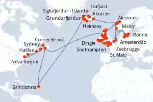 Itinerário : Nova Iorque, Halifax, Sydney, Saint Pierre & Miquelon, Saint Johns, Grundarfjordur, Akureyri, Siglufjordur - Islande, Isafjord, Reiquejavique, Heimaey, Djupivogur, Alesund, Maloy, Haugesund, Amesterdão, Zeebrugge, Southampton, Portland, Falmouth, Dingle, Bantry, Cork, Waterford, Holyhead, Liverpool, Dun Laoghaire, Belfast, Douglas, Greencastle, Ullapool, Scrabster, Invergordon, Kristiansand, Copenhaga, Warnemunde, Ronne, Karlskrona, Southampton, Le Havre, St. Malo, Falmouth, Cork, Holyhead, Glasgow, Killybegs, Corner Brook, Sydney, BOSTON, Nova Iorque
