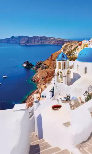 Mykonos seduz com as suas praias de areia fina e os seus célebres moinhos de vento, perfeitos para um relaxamento à beira-mar. Santorini, com as suas casas brancas e igrejas de cúpula azul empoleiradas em falésias, oferece um cenário romântico e panoramas espetaculares. Creta, rica em vestígios minoicos como o palácio de Knossos, imerge os viajantes numa história milenar.