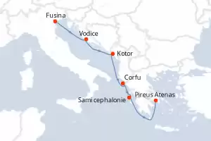 Itinerário : Fusina, Piran, Vodice, Kotor, Pilos, Nafplio, Pireus Atenas